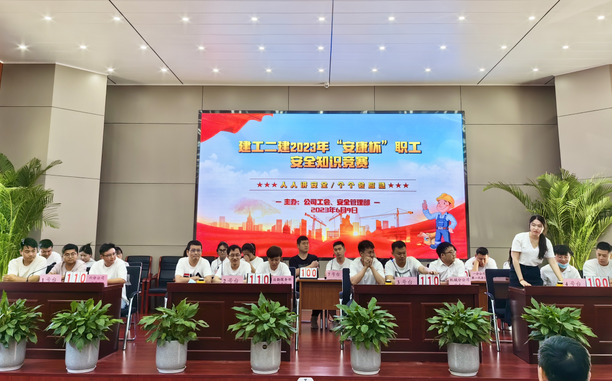 今年六月是第22個(gè)全國(guó)“安全生產(chǎn)月”,主題為“人人講安全,個(gè)個(gè)會(huì)應(yīng)急”。6月9日上午,公司工會(huì)牽頭,與安全管理部聯(lián)合舉辦了建工二建2023年“安康杯”職工安全生產(chǎn)知識(shí)競(jìng)賽活動(dòng)。安全知識(shí)競(jìng)賽的開(kāi)展,旨在通過(guò)以賽促學(xué)、以學(xué)促用,大力弘揚(yáng)“生命至上、安全為天”的安全理念,加強(qiáng)安全知識(shí)宣傳教育,切實(shí)增強(qiáng)廣大職工安全生產(chǎn)意識(shí)和安全管理知識(shí)水平。公司黨委副書(shū)記、工會(huì)主席王軍,副總經(jīng)理代鵬飛出席活動(dòng)。