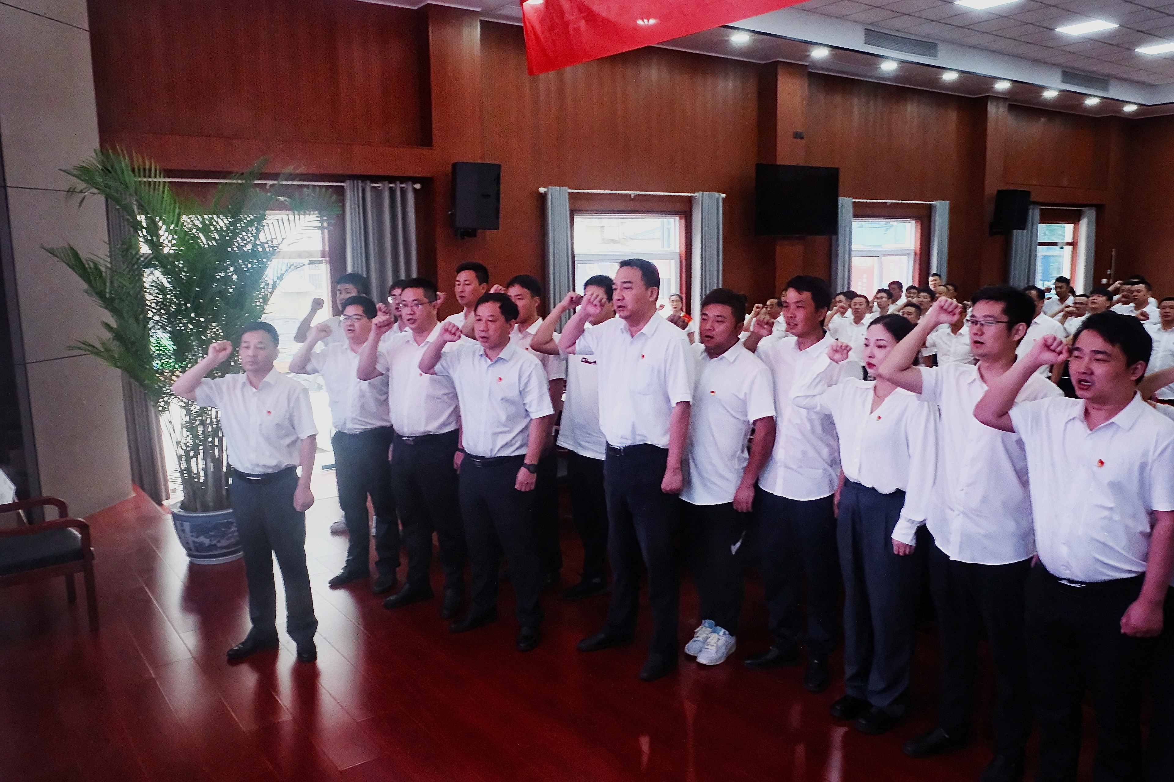 公司領(lǐng)導(dǎo)班子成員為受表彰的集體和個(gè)人頒發(fā)獎(jiǎng)牌、榮譽(yù)證書,6名受表彰代表進(jìn)行交流發(fā)言。隨后,在王軍的帶領(lǐng)下,新黨員舉行入黨宣誓,全體黨員重溫入黨誓詞。