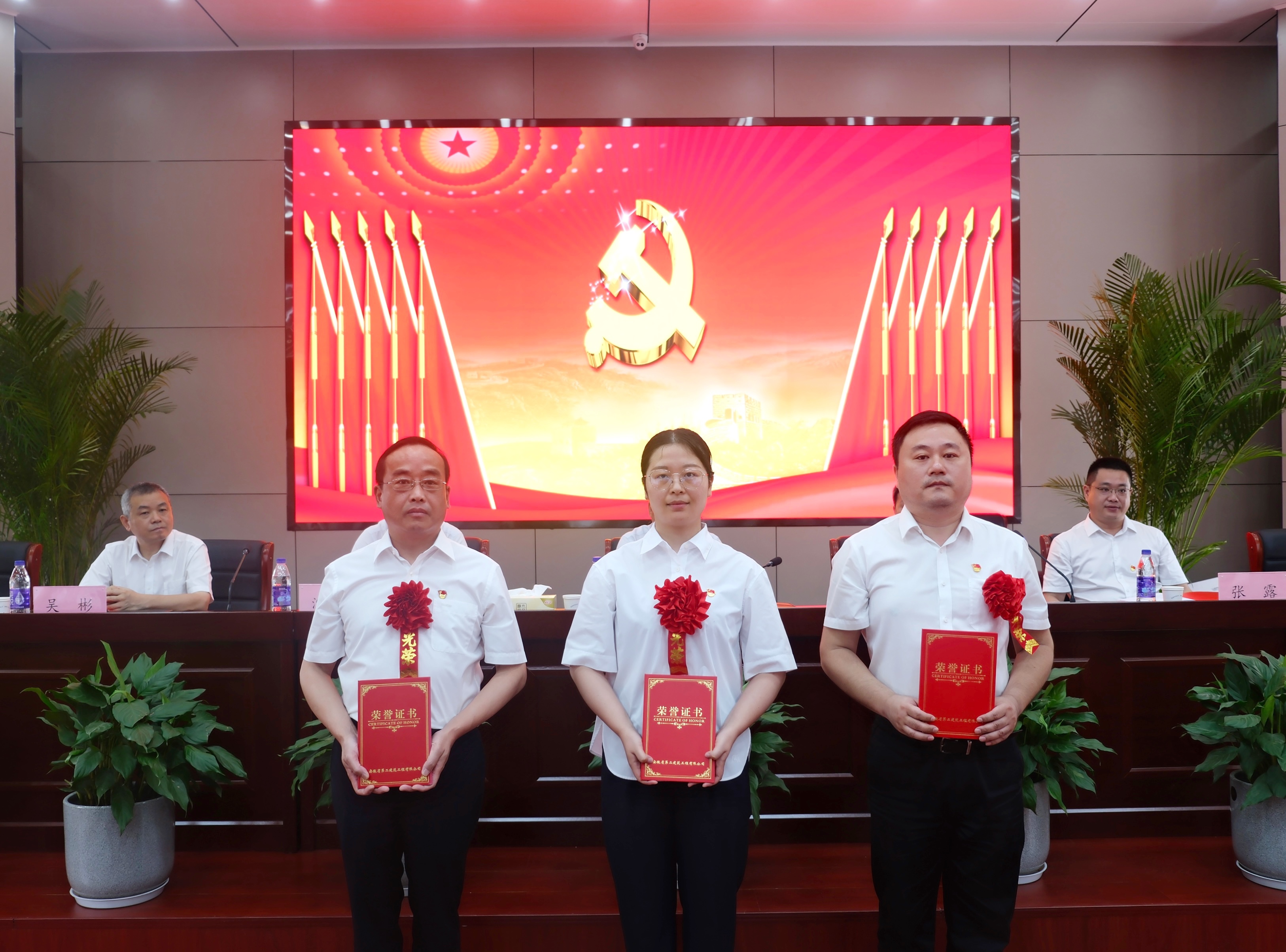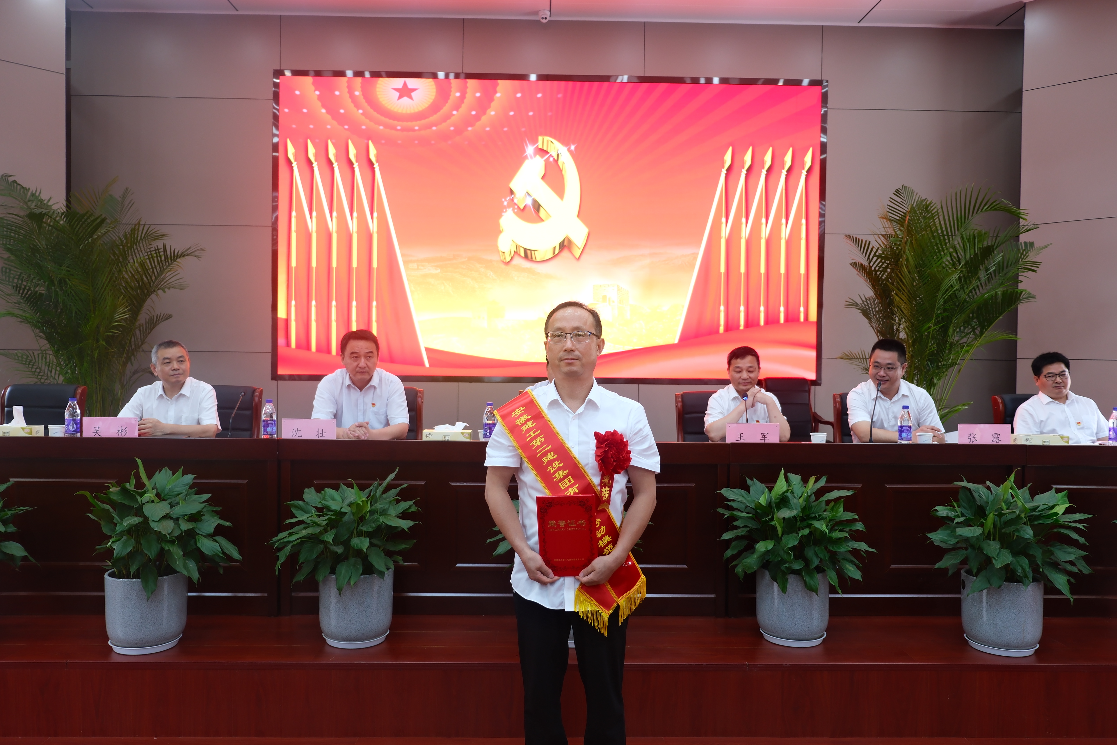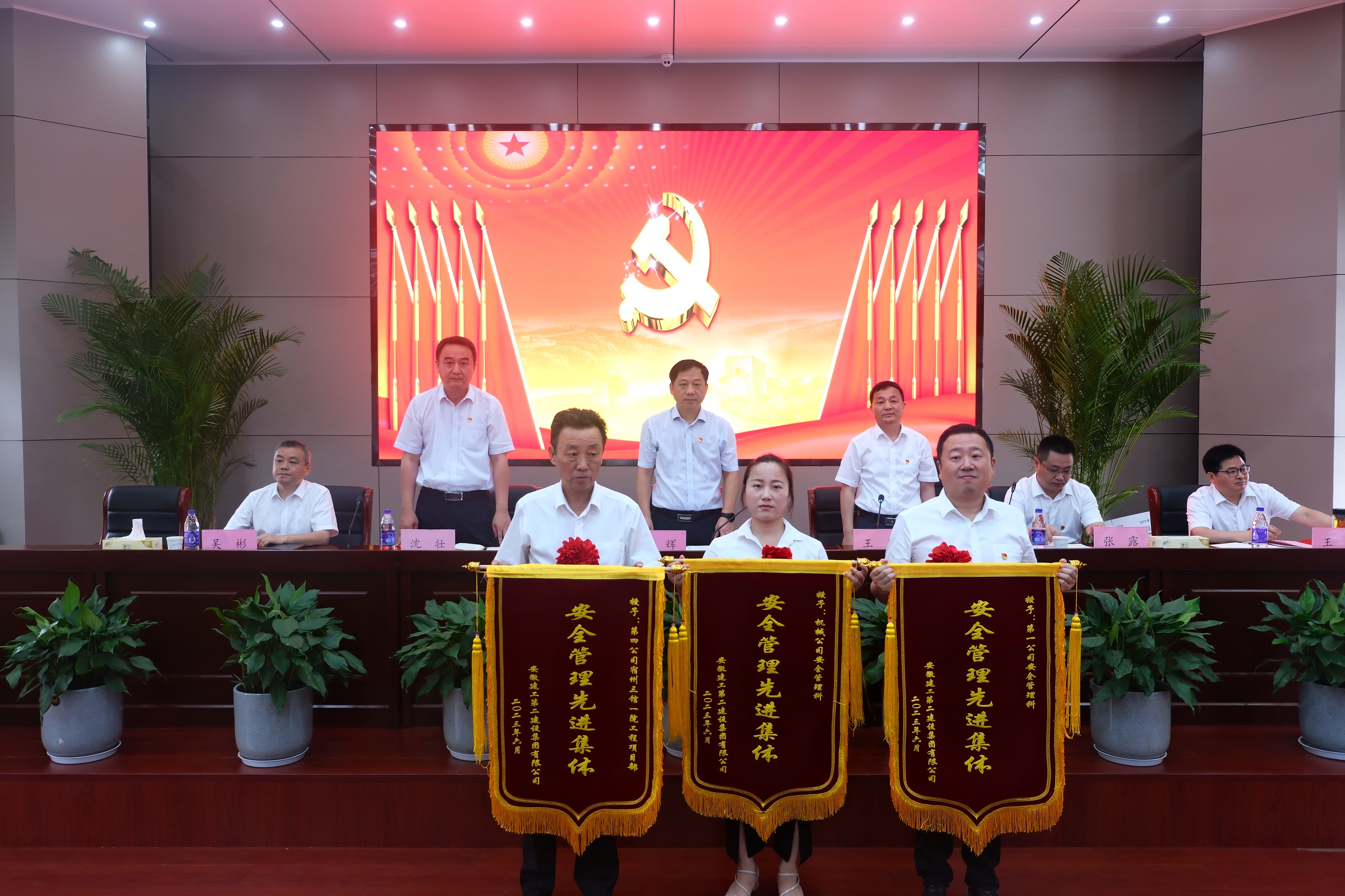 為慶祝中國共產(chǎn)黨成立102周年,深入開展學(xué)習(xí)貫徹習(xí)近平新時(shí)代中國特色社會主義思想主題教育,落實(shí)黨的二十大精神,6月29日上午,建工二建集團(tuán)在新會議室召開慶祝建黨102周年表彰暨黨課報(bào)告會。公司在肥領(lǐng)導(dǎo)、機(jī)關(guān)部門負(fù)責(zé)人及黨員、所屬單位領(lǐng)導(dǎo)班子成員、群團(tuán)工作人員、公司黨委2022年度“兩優(yōu)一先”受表彰集體及受表彰人員代表、公司2022年度“先進(jìn)集體”“先進(jìn)個(gè)人”受表彰集體及受表彰人員代表,公司團(tuán)委2022年度“兩優(yōu)一紅”受表彰集體及受表彰人員代表,部分預(yù)備黨員參會。黨委副書記、總經(jīng)理葛輝出席會議并作黨課報(bào)告。會議由黨委副書記、工會主席王軍主持。