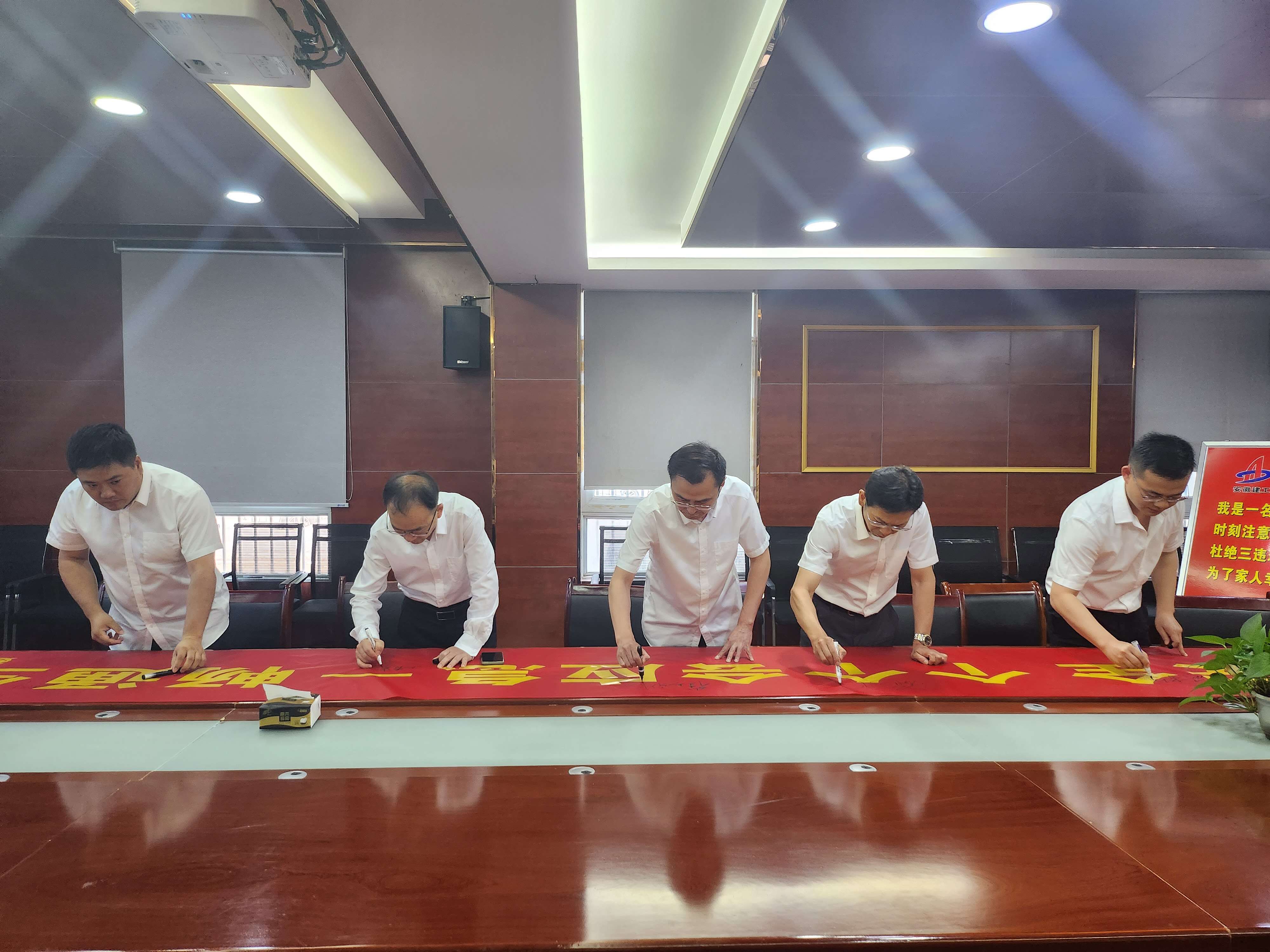 “我是一名安全建工人,我鄭重宣誓:時刻注意安全,遵守安全法規(guī);履行安全職責,提高安全技能;杜絕三違現象,保證四不傷害;強化紅線意識,促進安全發(fā)展;為了家人幸福、企業(yè)發(fā)展,誓做建工安全人!”伴隨著一陣陣響亮的宣誓聲,聯合簽名、觀看安全生產月主題宣傳片及公益廣告等,第一分公司2024年“安全生產月”正式拉開帷幕。