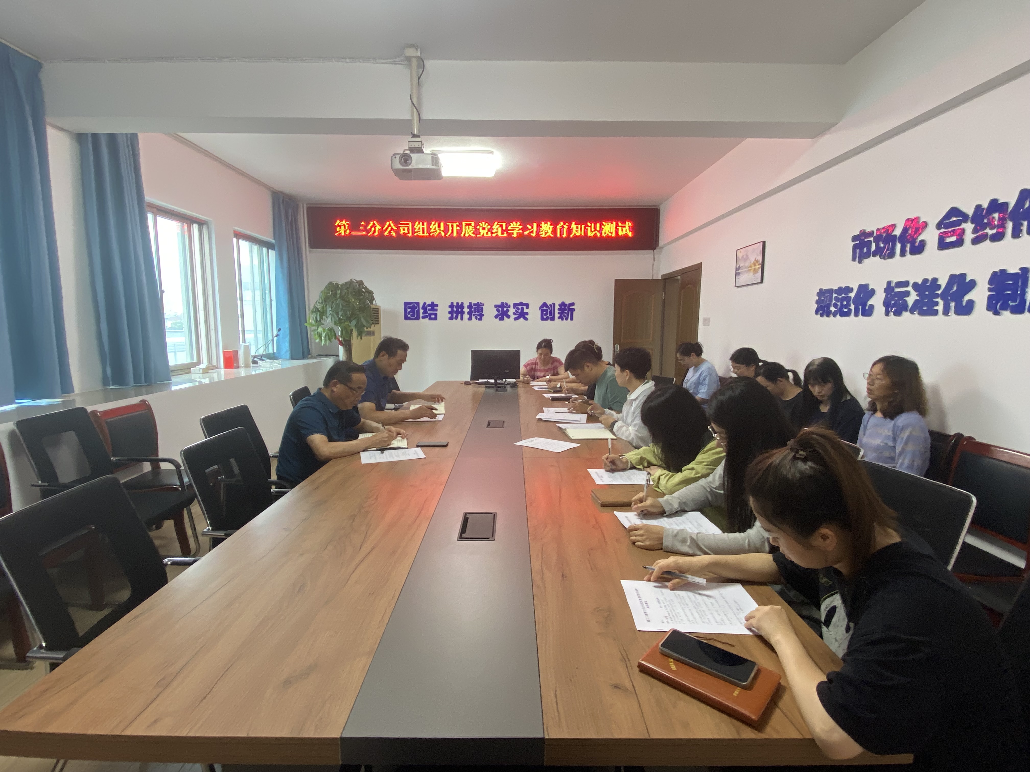 為持續(xù)加強黨紀學習教育,推動黨紀學習教育走深走實,6月26日上午,第三分公司黨支部召開黨紀學習教育學習會暨黨紀學習教育知識測試,機關全體人員參加會議,所屬項目部同步學習。