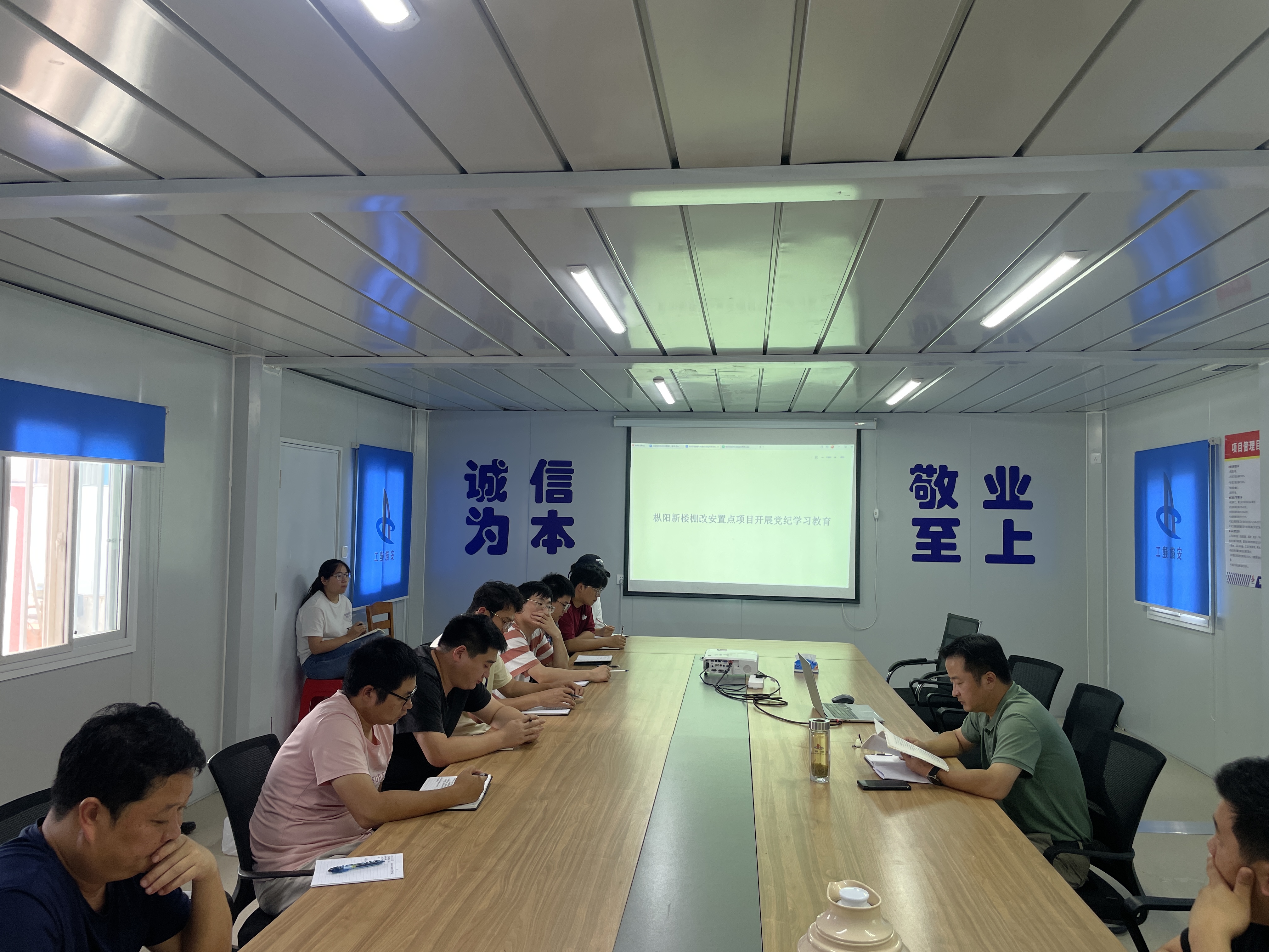 第三分公司副經(jīng)理卜洪劍赴樅陽新樓棚改安置點項目。他結(jié)合《條例》、典型案例分析等內(nèi)容進行黨紀教育,解讀了開展黨紀學習教育的目的要求、內(nèi)容安排和重要意義,教育引導黨員干部學紀、知紀、明紀、守紀,自覺遵守和堅決維護黨紀黨規(guī)和公司規(guī)章制度。