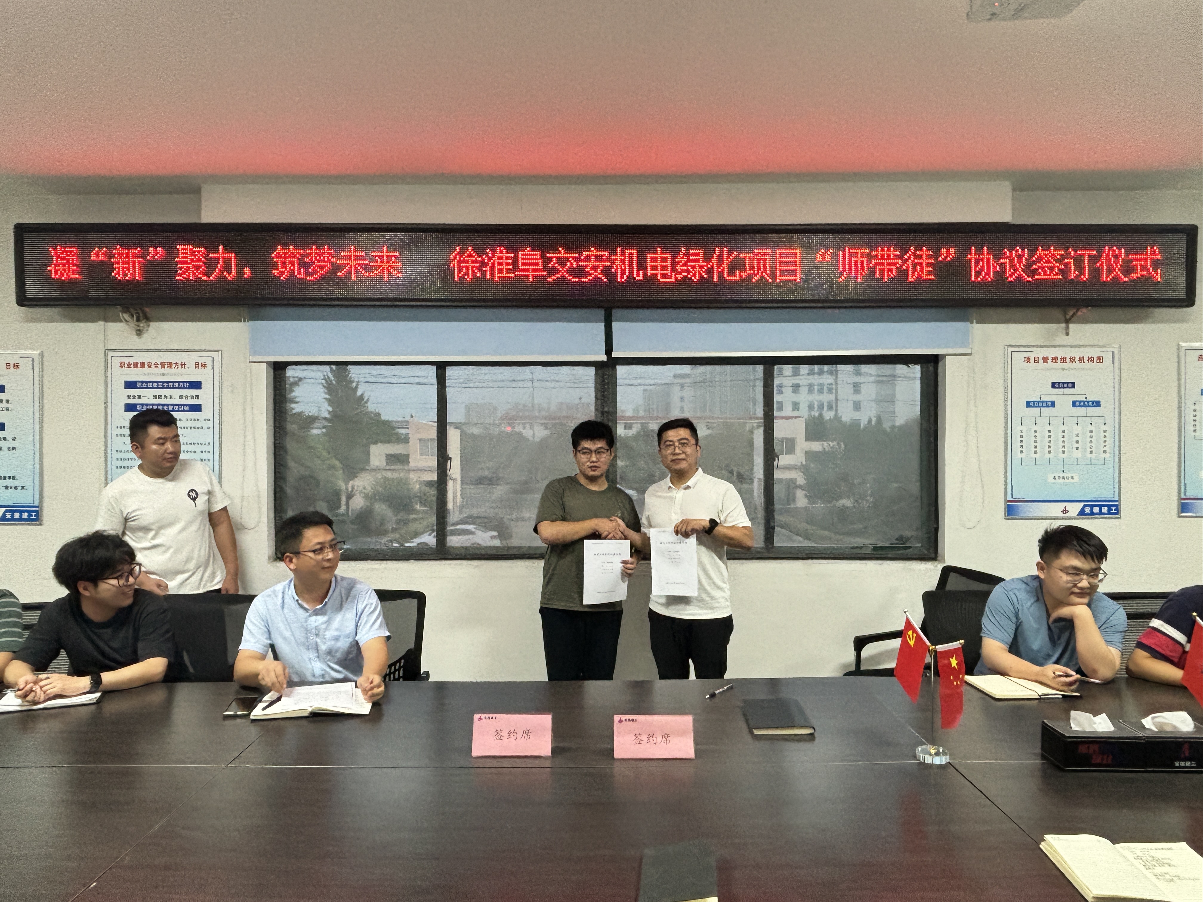 為幫助新員工深入了解公司發(fā)展戰(zhàn)略及經(jīng)營模式,培養(yǎng)和樹立起良好的職業(yè)素養(yǎng),8月22日,徐淮阜交安機(jī)電綠化項(xiàng)目舉辦新員工座談會(huì)及“師帶徒”協(xié)議簽約儀式。