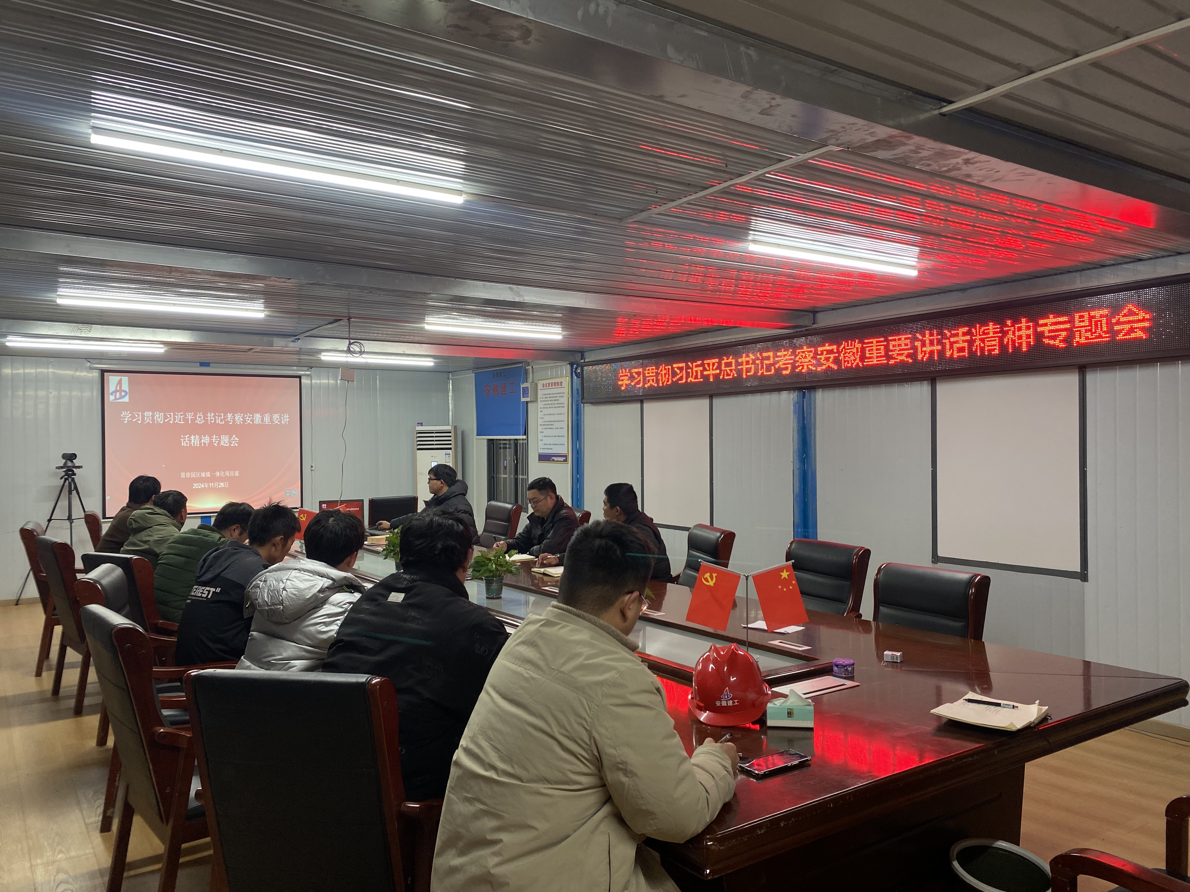 2024年11月26日,宿徐園區(qū)城鎮(zhèn)一體化項(xiàng)目部組織全體職工學(xué)習(xí)貫徹習(xí)近平總書記考察安徽重要講話精神,全面回顧了總書記考察期間對(duì)安徽經(jīng)濟(jì)社會(huì)發(fā)展、科技創(chuàng)新、生態(tài)保護(hù)、民生改善等諸多方面提出的殷切期望和明確要求,深刻感受到總書記對(duì)安徽這片土地的深切關(guān)懷以及賦予的重大使命。