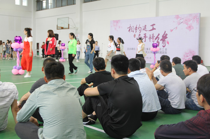 本次聯(lián)誼活動以“相約建工,牽手情緣” 為活動主題,通過豐富多彩的游戲環(huán)節(jié),讓男女嘉賓在完成任務(wù)的過程中,相互學(xué)習(xí),相互交流,增進(jìn)了解,增進(jìn)友誼。經(jīng)過一上午的游戲互動環(huán)節(jié),現(xiàn)場的男女嘉賓從陌生到相識,由靦腆到主動,在“大聲說出愛”的展示環(huán)節(jié),男女嘉賓依次走上舞臺,以T臺秀的形式,展示自我,氣氛非常熱烈,把聯(lián)誼活動推向高潮。許多男嘉賓勇敢邁出第一步,牽手自己心儀的女生,現(xiàn)場共有19對男女嘉賓牽手成功。
