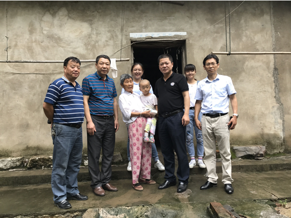 8月14日,安徽二建公司黨委書記劉賢奇和工會主席李林帶領(lǐng)部分支部書記一行7人冒著大雨看望樅陽縣鳳儀鄉(xiāng)紅巾村陳芝梅老人及孫子。