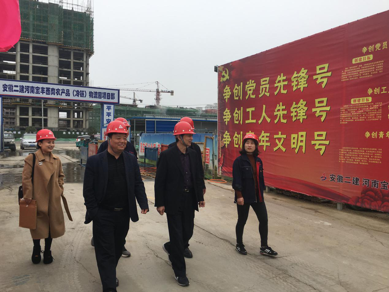 和煦的陽光溫暖愜意,細(xì)柔的春風(fēng)馨香滿懷,4月10日,建工控股工會副主席吳曉伍、安徽二建公司副調(diào)研員李林、四分公司黨支部書記董建民等一行5人,來到安徽二建河南寶豐西商農(nóng)產(chǎn)品(冷鏈)物流園項(xiàng)目現(xiàn)場驗(yàn)收,并為項(xiàng)目“工人先鋒號”授牌。