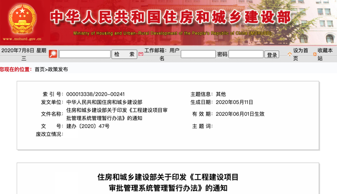 近日,住房和城鄉(xiāng)建設(shè)部印發(fā)《工程建設(shè)項(xiàng)目審批管理系統(tǒng)管理暫行辦法》。
