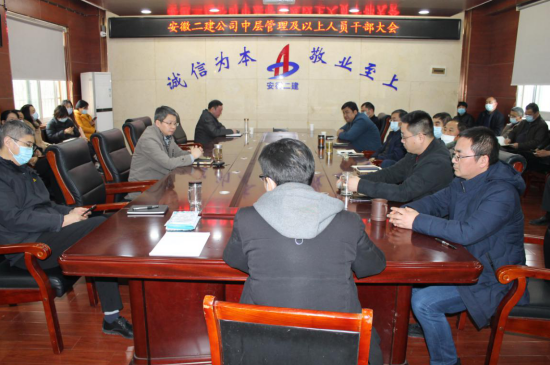 為進一步加強干部隊伍建設(shè),推動企業(yè)更好更快發(fā)展。2月4日,安徽二建公司召開中層管理及以上人員干部大會。公司領(lǐng)導(dǎo)、機關(guān)部門負責(zé)人、分公司黨政主要領(lǐng)導(dǎo)、部分職工代表參加,會議由公司黨委工作部主任施用宏主持。