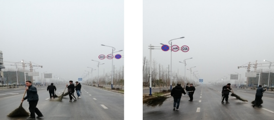 3月19日,二分公司琨宇悅湖城項目部與城管部門聯(lián)系主動承擔清掃陳集路和廬陽大道路面衛(wèi)生,項目管理人員在項目經(jīng)理姚鵬的帶領(lǐng)下,拿起掃把垃圾桶,清理下雨后路面留下的落葉及垃圾,大家干勁十足,落葉及垃圾很快得到清理,得到了城管部門的認可。