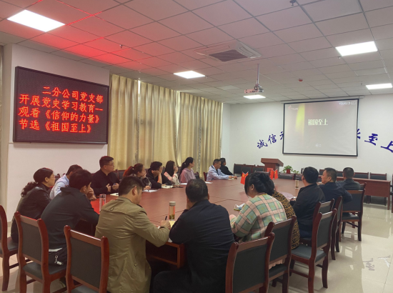 為認(rèn)真貫徹落實(shí)習(xí)近平總書(shū)記在中央黨史學(xué)習(xí)教育動(dòng)員大會(huì)上的重要講話(huà)精神,進(jìn)一步深入貫徹公司黨委關(guān)于開(kāi)展黨史學(xué)習(xí)教育的文件精神。4月16日,二分公司黨支部開(kāi)展黨史學(xué)習(xí)教育活動(dòng),組織黨員和干部職工觀(guān)看電影《長(zhǎng)征》及紀(jì)錄片《信仰的力量》節(jié)選《祖國(guó)至上》。