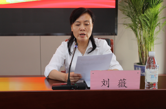 公司財(cái)務(wù)總監(jiān)劉薇宣讀閱讀演講比賽獲獎(jiǎng)通報(bào)