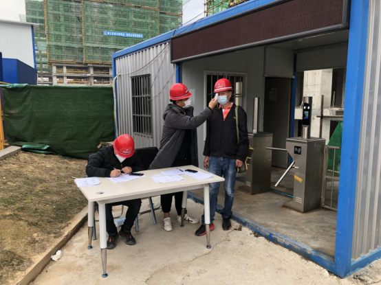 項(xiàng)目部按計(jì)劃搶抓工期,全力推進(jìn)項(xiàng)目建設(shè)的同時(shí),以做好項(xiàng)目現(xiàn)場(chǎng)疫情防控為前提,實(shí)行“半封閉+強(qiáng)防護(hù)”管理,在備足口罩、消毒液、洗手液等防護(hù)用品的同時(shí),嚴(yán)格執(zhí)行門禁、實(shí)名制管理制度,做好每天體溫測(cè)量和記錄臺(tái)賬,食堂堅(jiān)持嚴(yán)把食品五道關(guān),嚴(yán)格執(zhí)行分餐制,避免聚集,提倡工人、管理人員居住在現(xiàn)場(chǎng)員工和工人宿舍,并按每間寢室最多居住不超過4人的標(biāo)準(zhǔn)安排住宿,最大程度上保障現(xiàn)場(chǎng)作業(yè)人員的身體健康與生命安全,確保項(xiàng)目復(fù)工安全有序進(jìn)行。“36.6℃,體溫正常,請(qǐng)戴好口罩!”走進(jìn)項(xiàng)目部,隨處可見新冠肺炎疫情防控的宣傳標(biāo)語(yǔ),廣播中一遍又一遍地重復(fù)播放著疫情防控的注意事項(xiàng)。