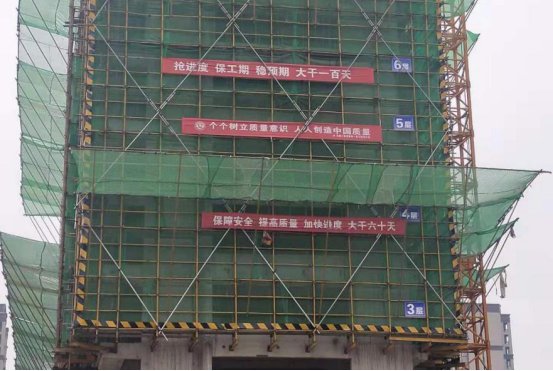 自9月召開“大干100天”勞動競賽誓師動員大會以來,臨泉項目在施工現(xiàn)場懸掛“搶進度、保工期、穩(wěn)預(yù)期、大干一百天”等多條橫幅,進行動員宣傳。同時,為完成“大干100天”任務(wù),項目部針對勞動競賽過程中出現(xiàn)的問題,制定了具體的措施:一是主動尋找鋼筋供應(yīng)墊資商,協(xié)商解決因資金緊張導(dǎo)致的鋼筋原材供應(yīng)脫節(jié)問題;二是為確?;炷琳9?yīng),在公司資金緊張的情況下與甲方協(xié)商借款事宜,以支付混凝土款項;三是給鋼筋、木工、瓦工、水電、外架等班組下達任務(wù)書,明確了他們的奮斗目標(biāo);四是與項目部管理人員共同簽訂勞動競賽責(zé)任狀,群策群力、齊抓共管;五是制定切實可行的獎懲制度,激發(fā)全體人員的工作熱情,賞罰分明、有據(jù)可依。