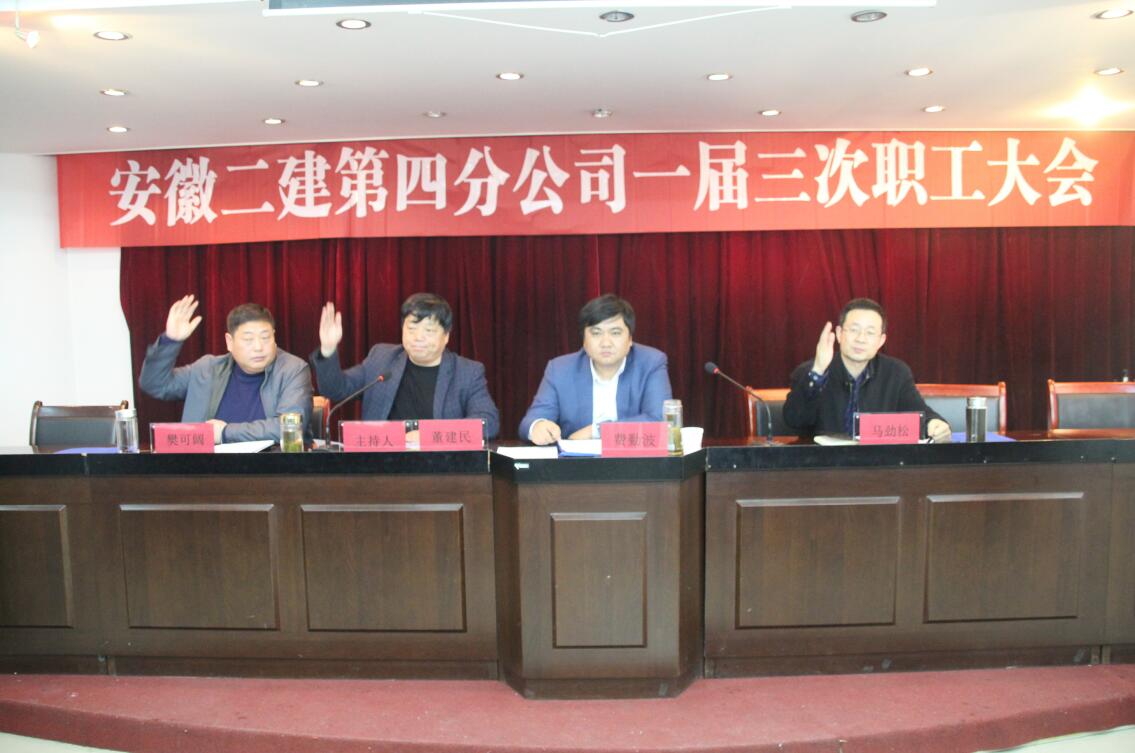 3月22日上午,安徽二建第四分公司順利召開了一屆三次職工大會,公司黨委副書記、紀委書記仇多維,總經(jīng)理助理、工會副主席蒯家江,黨委工作部主任施用宏到會指導,分公司52名職工參會,支部書記董建民主持大會。