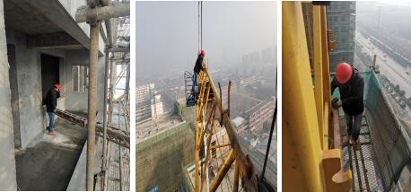 對(duì)塔吊大臂、附臂、附臂套架、人貨電梯標(biāo)準(zhǔn)節(jié)及導(dǎo)軌進(jìn)行檢查