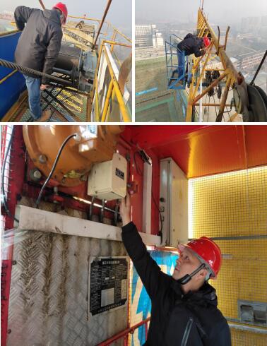對(duì)塔吊主鋼絲繩、小車鋼絲繩及人貨電梯的防墜器進(jìn)行檢查