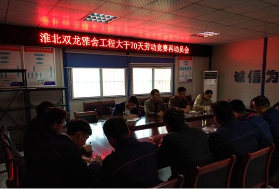 自十月初公司開展“大干70天”勞動(dòng)競賽活動(dòng)以來,淮北雙龍雅舍項(xiàng)目在項(xiàng)目經(jīng)理盧因東的帶領(lǐng)下積極響應(yīng)公司號召,合理安排工作計(jì)劃,精心組織施工部署,全面掀起大干熱潮。會(huì)上,崔書斌經(jīng)理要求項(xiàng)目部繼續(xù)保持高昂的工作熱情,倒排施工計(jì)劃,抓住關(guān)鍵節(jié)點(diǎn)。蒯家江宣貫了公司勞動(dòng)競賽活動(dòng)精神,指示項(xiàng)目部落實(shí) “比、學(xué)、趕、幫、超”活動(dòng)方式,提高認(rèn)識,端正態(tài)度。強(qiáng)調(diào)年輕管理人員要加強(qiáng)自身學(xué)習(xí),提高工作執(zhí)行力,養(yǎng)成良好的工作習(xí)慣;同時(shí)也要有面對挫折的勇氣,做到干一行愛一行,同心協(xié)力為二建的發(fā)展貢獻(xiàn)一份力量。