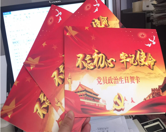 支部書記倪海霞為在三季度入黨的三位黨員統(tǒng)一過政治生日并發(fā)放生日賀卡。通過重溫入黨誓詞、重憶入黨志愿,進(jìn)一步提高分公司黨員隊(duì)伍整體素質(zhì),讓廣大黨員通過常思“當(dāng)初入黨為什么、如今為黨做什么、今后為黨留什么”明確黨員使命,增強(qiáng)黨性意識(shí)。