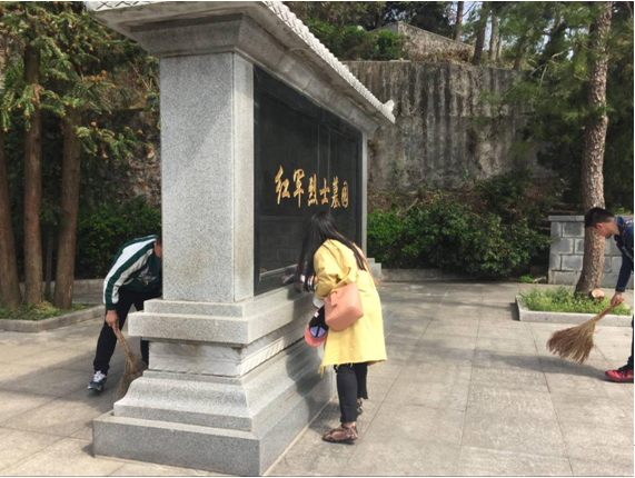 參觀結(jié)束后,青年團(tuán)員們抑制住激動的心情,組織起墓園清潔活動。此時正值雨季,樹葉經(jīng)風(fēng)雨吹打,稀稀落落覆滿了陵園,大家合理分工,有序的對紅軍烈士墓園進(jìn)行了清掃。大伙們清掃的動作干練而又小心,生怕打擾了紅軍烈士的安眠,擦拭的地方干凈而又到位,生怕浮塵暗淡了革命烈士的光榮。