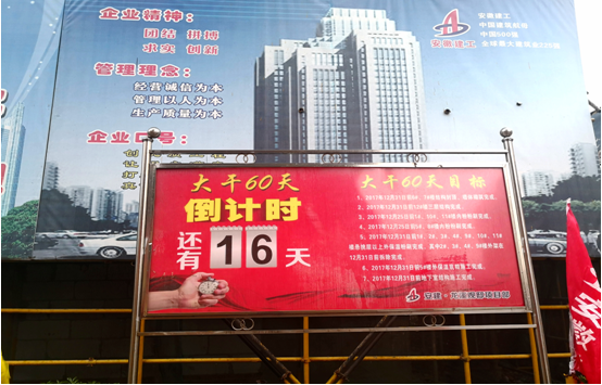 一是強(qiáng)化管理。項(xiàng)目部根據(jù)大干目標(biāo),制定一系列考評(píng)辦法,明確細(xì)化責(zé)任,充分調(diào)動(dòng)全體職工和班組積極參與大干 “六十天”施工高潮中,攻堅(jiān)克難圓滿完成大干總目標(biāo);二是按照大干 “六十天”活動(dòng)目標(biāo)詳細(xì)部署施工計(jì)劃,對(duì)生產(chǎn)任務(wù)進(jìn)行詳細(xì)分解,將分部分項(xiàng)工程倒排工期,利用調(diào)度會(huì)時(shí)由各工區(qū)長(zhǎng)通報(bào)日進(jìn)度;三是領(lǐng)導(dǎo)班子統(tǒng)一思想、轉(zhuǎn)變思路,因12#樓受拆遷影響,經(jīng)常與拆遷戶產(chǎn)生摩擦,為不影響進(jìn)度,項(xiàng)目部要求12#樓施工班組見(jiàn)縫插針迅速投入到勞動(dòng)競(jìng)賽中去,投點(diǎn)放線全部任用年輕技術(shù)骨干負(fù)責(zé),強(qiáng)有力保障現(xiàn)場(chǎng)施工進(jìn)度;四是施工技術(shù)管理人員每天深入生產(chǎn)一線,隨時(shí)掌握當(dāng)天生產(chǎn)施工進(jìn)展情況和施工中存在的問(wèn)題,及時(shí)采取措施,協(xié)調(diào)落實(shí);五是在施工大門(mén)處安放“大干60天”倒計(jì)時(shí)牌,讓大家有緊迫感和責(zé)任感,同時(shí)要求各科室及勞務(wù)班組緊緊圍繞公司開(kāi)展的大干 “六十天”勞動(dòng)競(jìng)賽,已安全質(zhì)量為核心,強(qiáng)化監(jiān)管,確保安全文明施工再掀施工高潮。