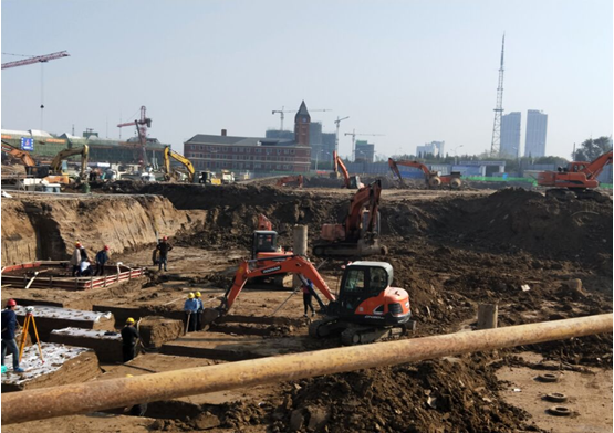 目前,各棟樓施工順利進(jìn)行,從土方開挖到地下室施工,處處呈現(xiàn)一片繁忙景象,施工高潮已全面形成。