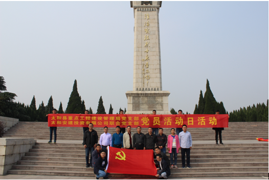 紅色之旅途中,太和安建投資有限公司聯(lián)合黨支部書記高偉發(fā)起了黨員和入黨積極分子共同參與的組織生活會(huì),從思想、黨性認(rèn)識(shí)上對(duì)黨員和入黨積極分子進(jìn)行了重大洗禮。太和縣委辦副主任、太和縣重點(diǎn)局苗玉勇給本次活動(dòng)致辭,并給紀(jì)念碑獻(xiàn)花藍(lán),接著薄局帶領(lǐng)我們重溫入黨誓詞,積極學(xué)習(xí)黨的歷史、黨的知識(shí)。