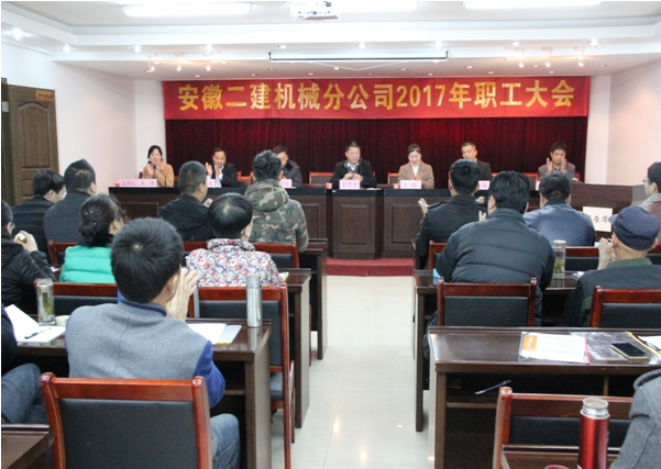 立足新起點,實現(xiàn)新跨越!3月23日上午,安徽二建機械分公司在原公司三樓會議室隆重召開2017年職工大會。公司黨委書記劉賢奇、紀委書記仇多維、女工主任王俊及機械分公司領導班子成員與職工40多人參加了會議。