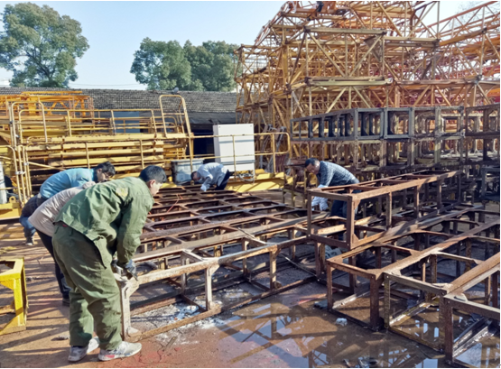 機械分公司作為公司建筑施工的先鋒隊,機械設(shè)備是根本。千里之堤潰于蟻穴,為了保證機械設(shè)備的安全運轉(zhuǎn)和使用壽命。3月15日,機械分公司各部門員工開展了為期三天的大型機械設(shè)備除銹和噴漆勞動。