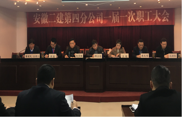 乘風破浪推發(fā)展,勠力同行齊奮進。為加快轉(zhuǎn)型升級步伐,優(yōu)化內(nèi)部管理機制,客觀分析當前四分公司面臨的形勢,認真學習貫徹落實安徽二建公司十五屆四次職代會精神,凝心聚力抓好2017年度各項工作,3月20日上午,安徽二建四分公司一屆一次職工大會在三樓會議室隆重召開。公司總工程師邱立龍、紀委書記仇多維、女工主任王俊以及四分公司職工近40人參加了會議。