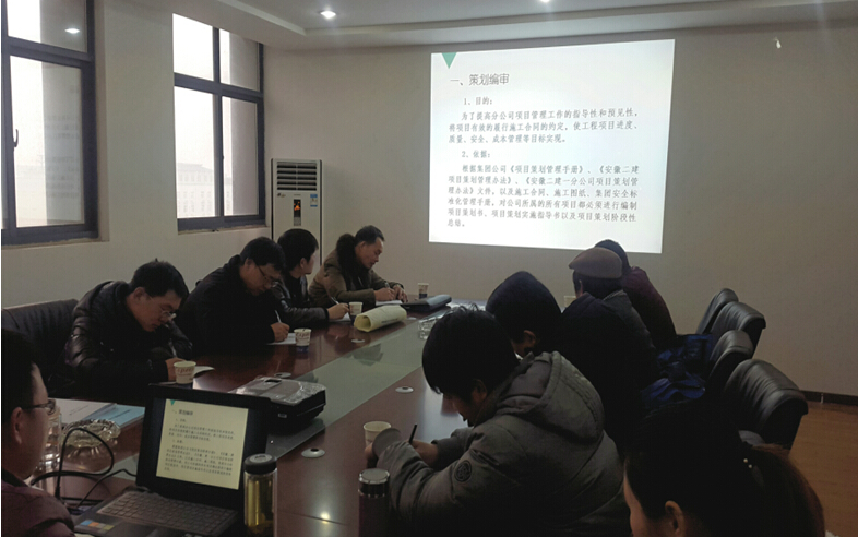 會議主要通過ppt形式就策劃編審、施組、方案編審、項目技術(shù)質(zhì)量考核、新開工項目告知等內(nèi)容進行解讀,集中學(xué)習(xí)了公司及分公司項目管理、質(zhì)量控制、重難點攻關(guān)、冬季施工等相關(guān)文件。