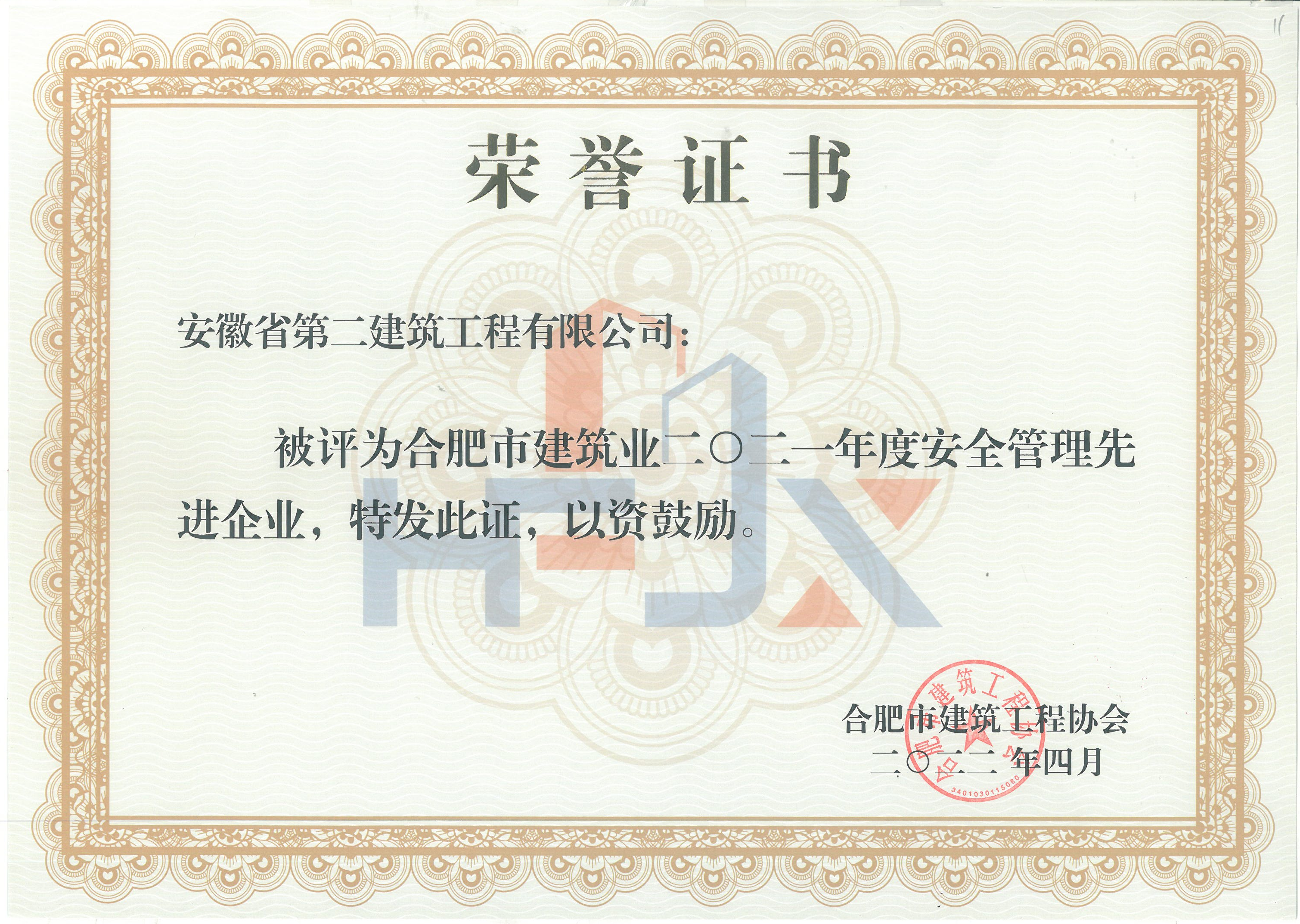 合肥市2021年度安全管理先進(jìn)企業(yè)