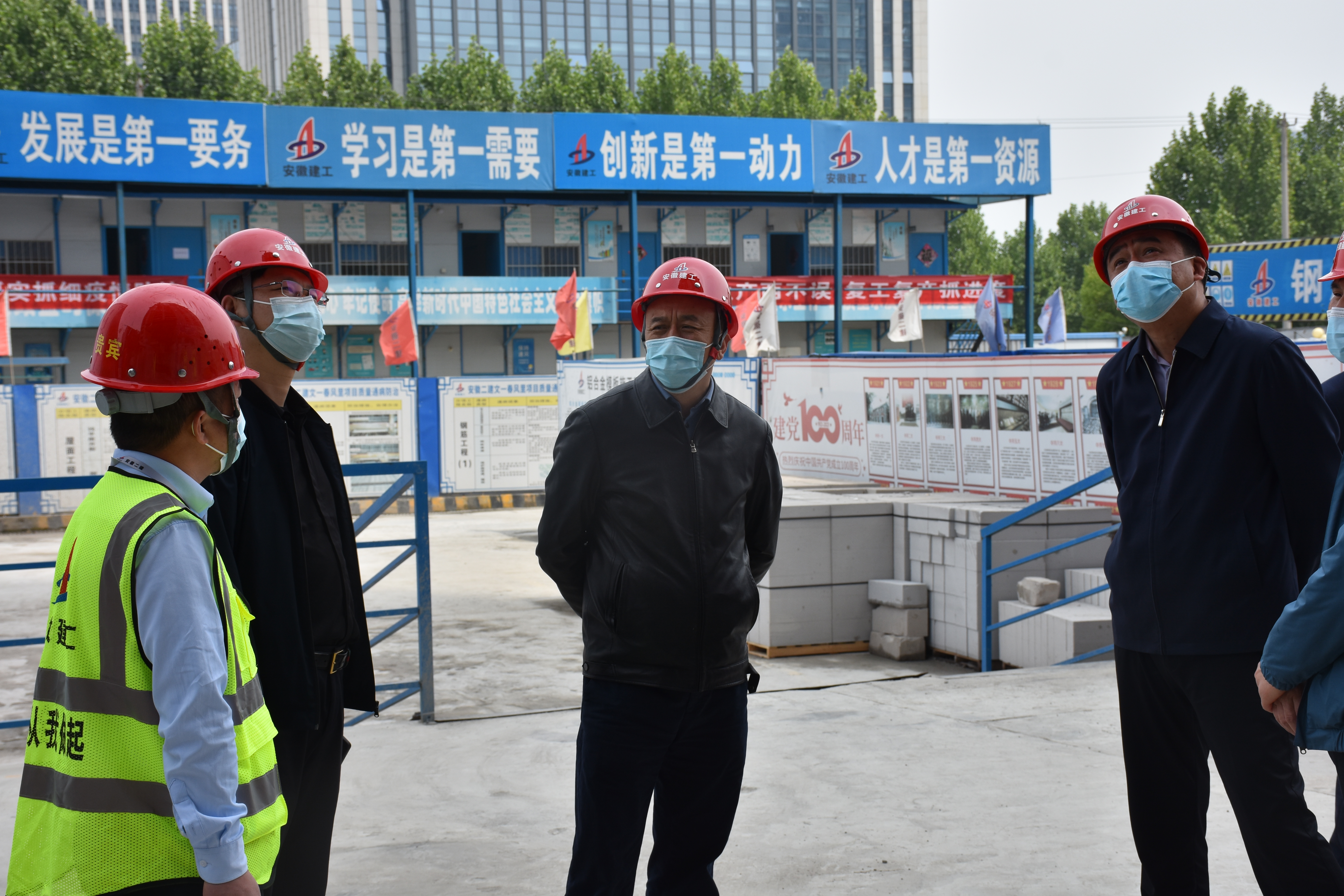王汪苗現(xiàn)場(chǎng)督導(dǎo)檢查項(xiàng)目部的施工現(xiàn)場(chǎng)、辦公區(qū)域、食堂、生活區(qū)情況,詳細(xì)了解項(xiàng)目部疫情防控工作部署、落實(shí)集團(tuán)及屬地工作要求、常態(tài)化疫情防控措施及防疫物資儲(chǔ)備等有關(guān)重點(diǎn)工作。在聽(tīng)取項(xiàng)目部關(guān)于當(dāng)前生產(chǎn)及疫情防控工作的匯報(bào)后,王汪苗對(duì)項(xiàng)目工作給予肯定,并指出,文一春風(fēng)里項(xiàng)目作為二建首個(gè)超高層工程,在抓好履約工期及安全生產(chǎn)的同時(shí)必須嚴(yán)把防疫關(guān),確保廣大職工生命健康安全。