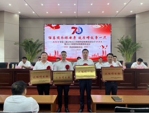 啟動(dòng)儀式上,公司黨委委員、副總經(jīng)理葉和永通報(bào)了2021年度“學(xué)黨史、保安康、搶工期、爭(zhēng)一流”勞動(dòng)競(jìng)賽考核結(jié)果及表彰的決定。會(huì)議表彰了2021年度勞動(dòng)競(jìng)賽優(yōu)勝單位、優(yōu)勝項(xiàng)目部。第三分公司、第四分公司等2家被授予“2021年度勞動(dòng)競(jìng)賽優(yōu)勝單位”稱(chēng)號(hào),宿州應(yīng)用技術(shù)學(xué)校、亳州濱江壹號(hào)、淮北鉑悅府、阜陽(yáng)沃達(dá)星海城項(xiàng)目等4個(gè)項(xiàng)目被授予“2021年度勞動(dòng)競(jìng)賽優(yōu)勝項(xiàng)目部”稱(chēng)號(hào)。
