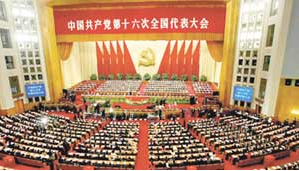 中國共產(chǎn)黨第十六次全國代表大會于2002年11月8日至14日在北京召開。這次大會應(yīng)到正式代表2114名、特邀代表40名(共2154名)(出席開幕式的代表和特邀代表共2134人),代表了全黨6600多萬黨員。大會通過關(guān)于《中國共產(chǎn)黨章程(修正案)》的決議,把“三個代表”重要思想同馬克思列寧主義、毛澤東思想、鄧小平理論一道確立為黨必須長期堅持的指導(dǎo)思想。